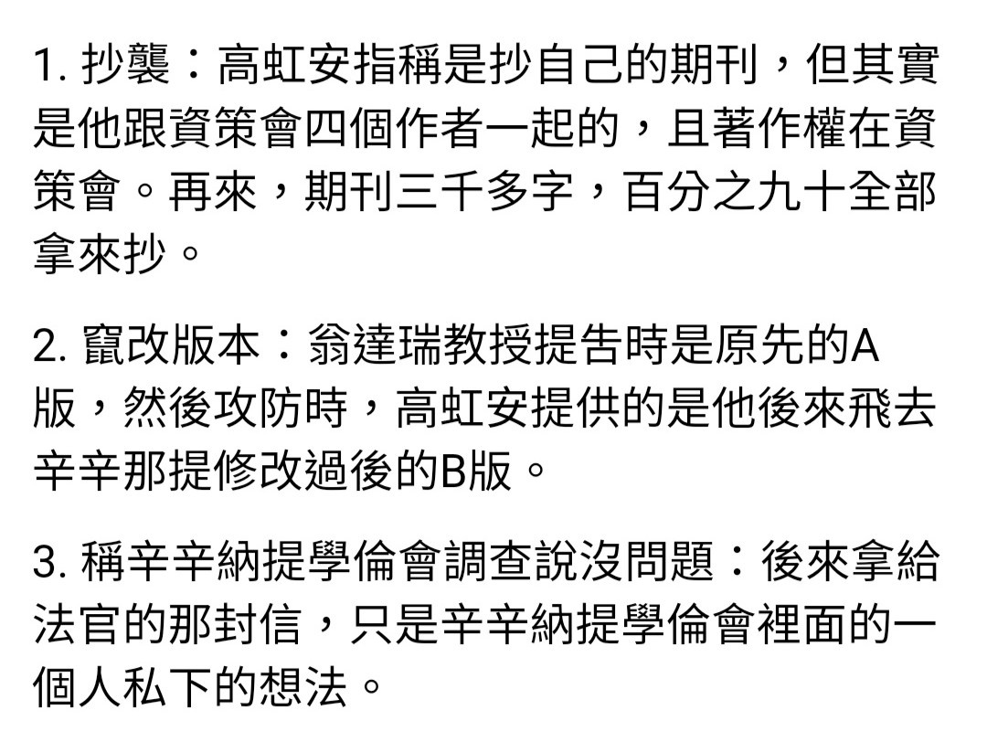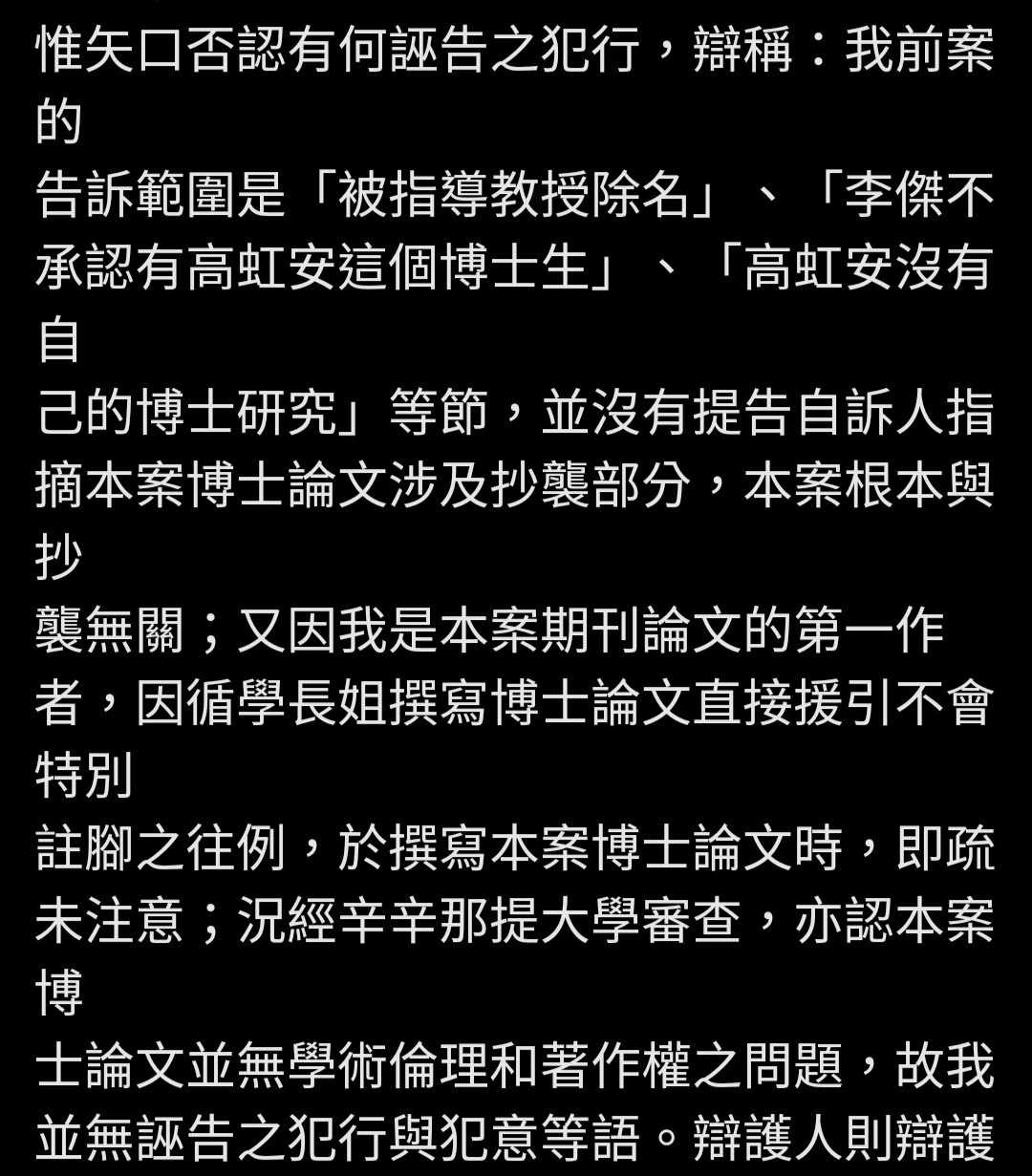 名了。換言之,李傑不承認有高虹安這個博士生」、「高虹安沒有自己的博士研究」之三