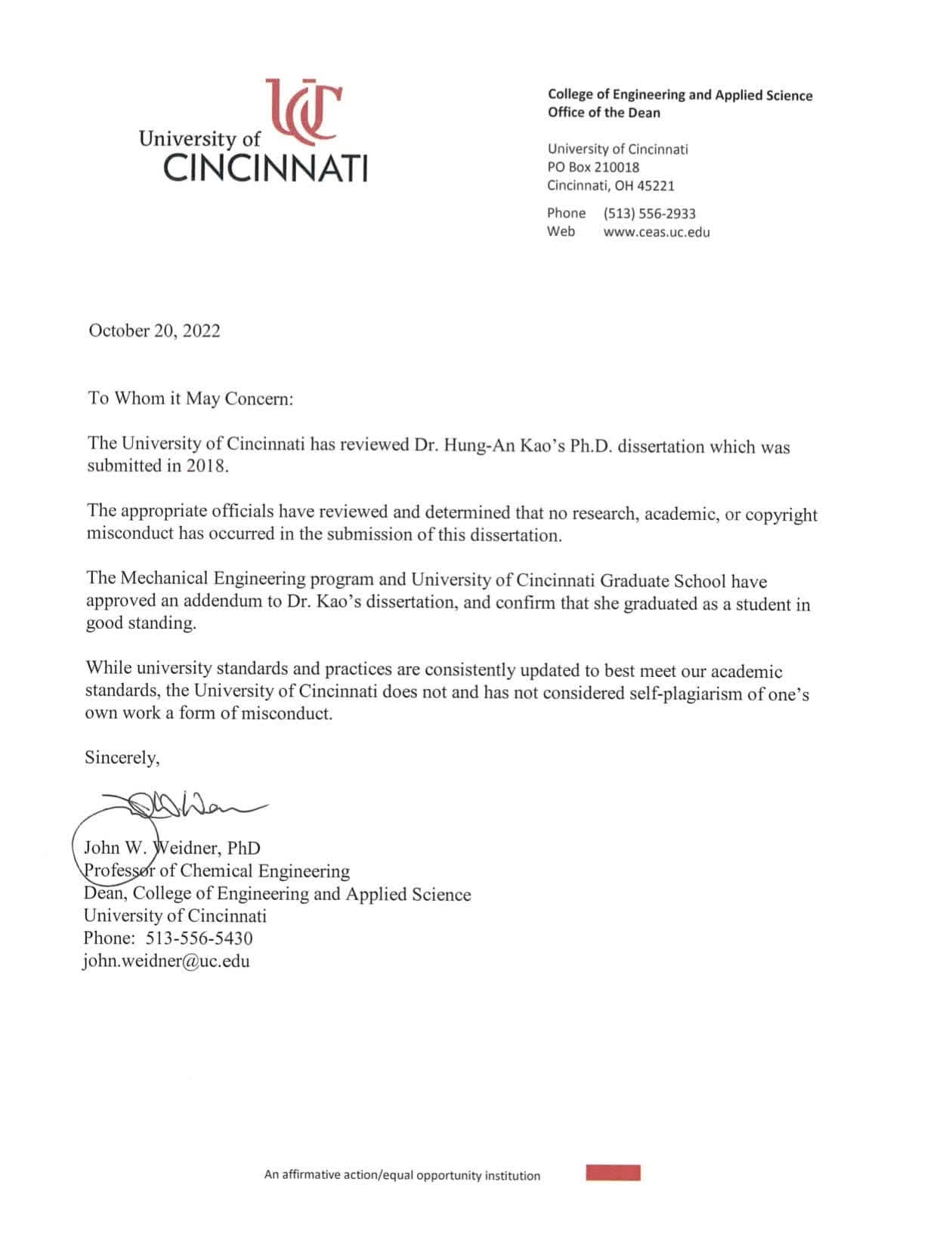 。詎料,高虹安明知其於107年4月27日提交之美國辛辛那提大學博士論文《Quality