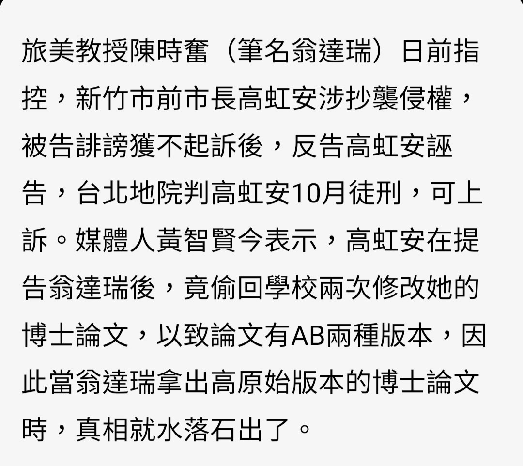 標題Re: [爆卦] 高虹安誣告案:臺北地方法院新聞稿