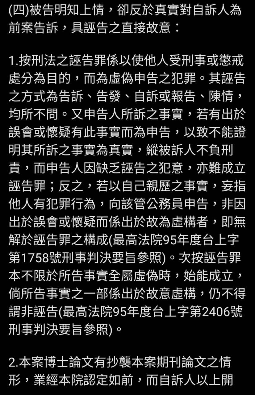 己的博士研究」等節,並沒有提告自訴人指摘本案博士論文涉及抄襲部分,本案根本與抄