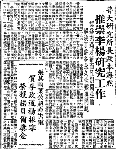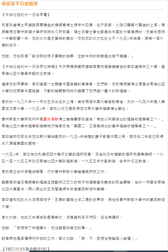 同是報導楊振甯李政道的事