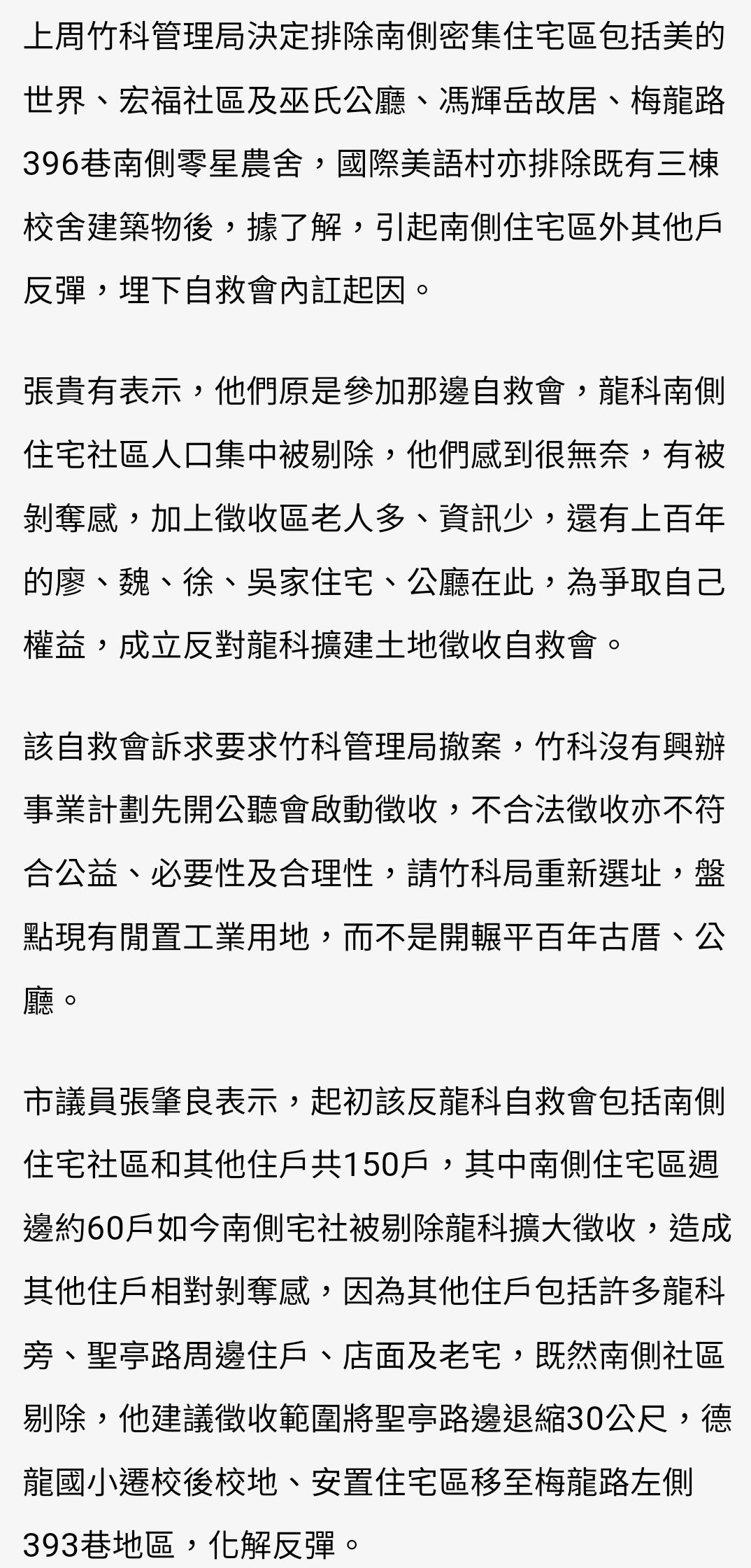 由有綠色色彩的張貴有帶領的自救會,要求撤案龍科三期擴建案,去凱道抗爭演變成,台積電在10/17說不來了,而所謂的在地居民僅張貴有在帶領抗議,1019帶領到竹科管理局抗議的僅30人,為什麼這麼少人可想而知了吧,其他地主是持無意見與歡迎