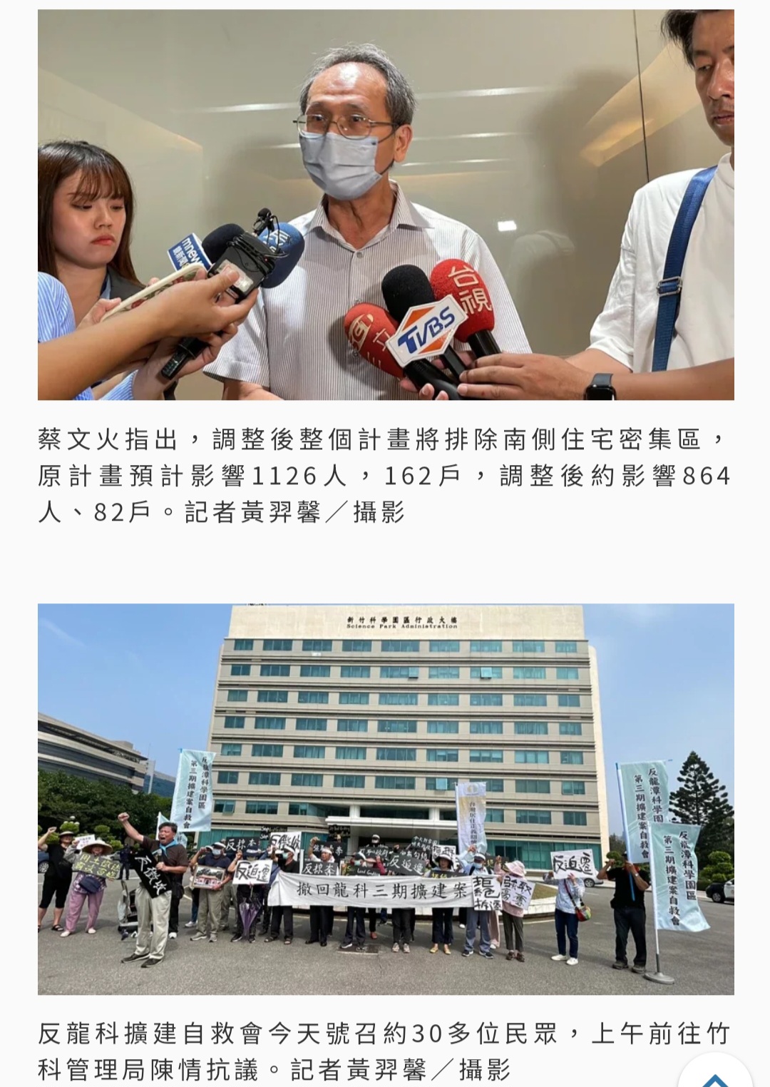 : 3.完整新聞標題:台積電退龍科自救會不滿被當暴民痛罵:蘇貞昌只顧財團