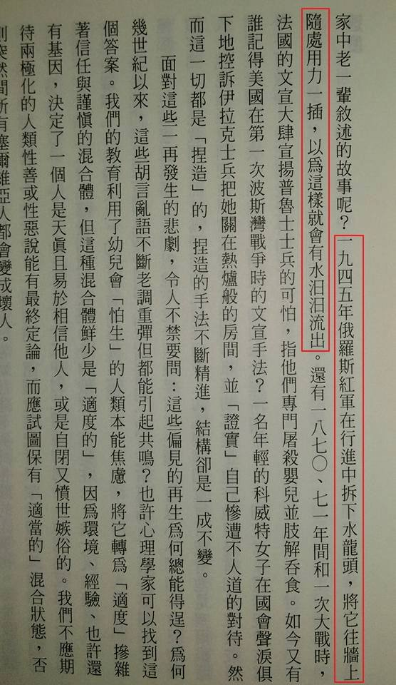 「1945年俄羅斯紅軍在行進中拆下水龍頭,將它往牆上隨處用力一插,以為這樣就會有水汨汨流出。」