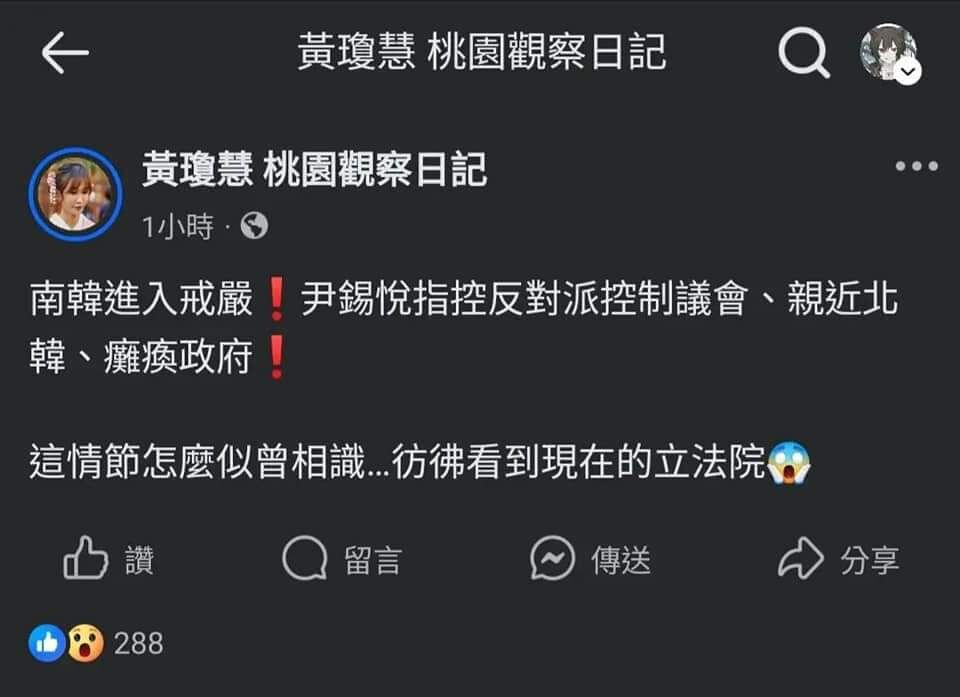 民進黨貼出韓國戒嚴文之後一天內綠營的各種支持戒嚴的聲音