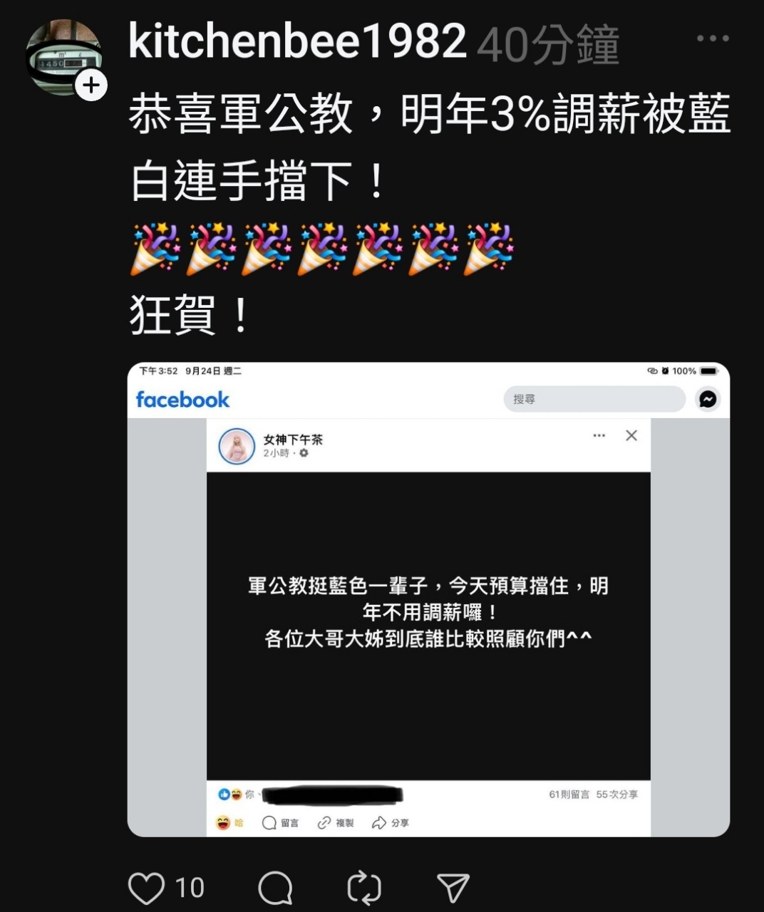 推 beyond780705: 笑死 綠畜在意軍公教 223.136.65.221 09/24 20:34