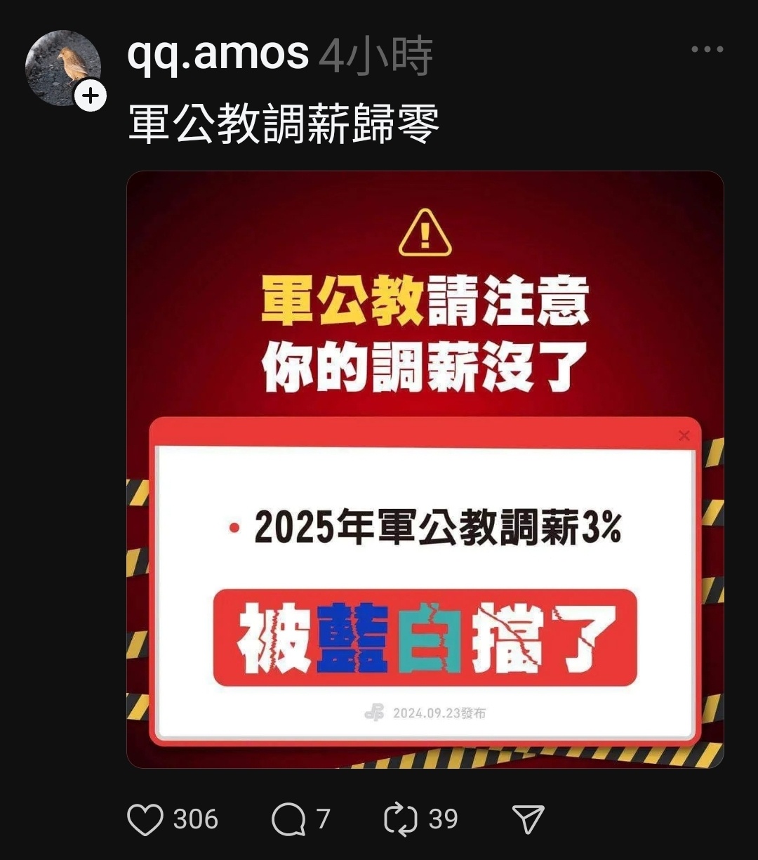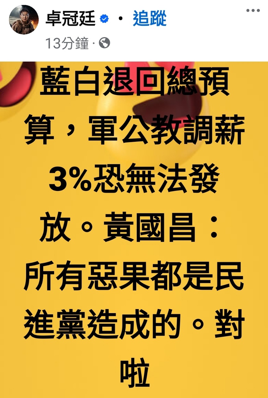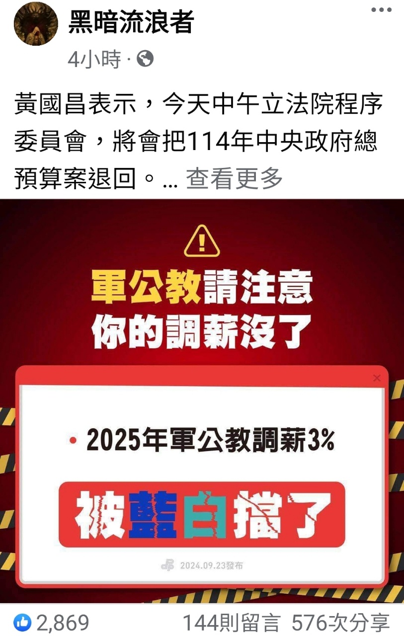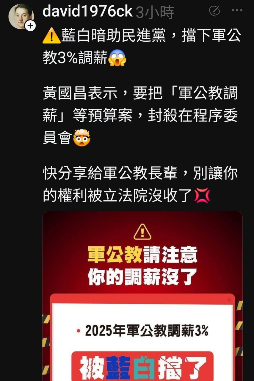 噓 chsterry7238: 人一綠腦就殘,退回預算跟調薪什麼 114.46.5.17 09/24 19:00