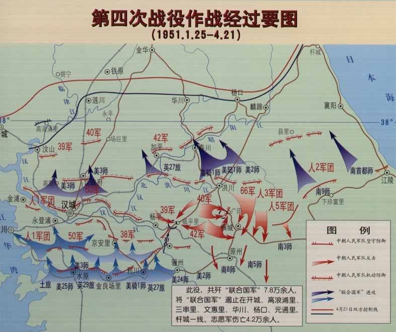 本次戰役志願軍雖有十一個軍參戰,但其中志第26、志第40軍在第一階段攻勢結束後就已向北撤退實施整補。在新的攻勢即將發起之時後撤兩個軍,實在是非常難以理解。可見這兩個參加過第四次戰役的軍在當時已經喪失戰鬥能力,由此也可推知志願軍在第四次戰役的傷亡非常慘重。