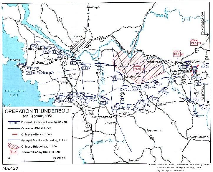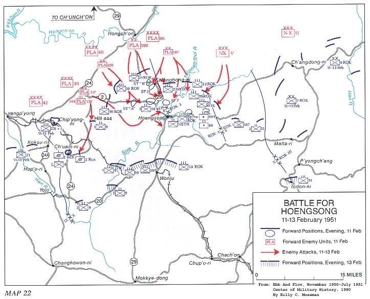 聯合軍為了阻止中朝軍的攻勢,將美3師15加強團(此時獨立配屬於聯第10軍)調至美2師右翼,並將美空降187團調至橫城地區擔任預備隊。美3師原為聯第1軍預備隊,臨危受命,於一夜之間行軍七十哩前去堵塞美2師右翼的缺口,於21日抵達投入戰鬥。