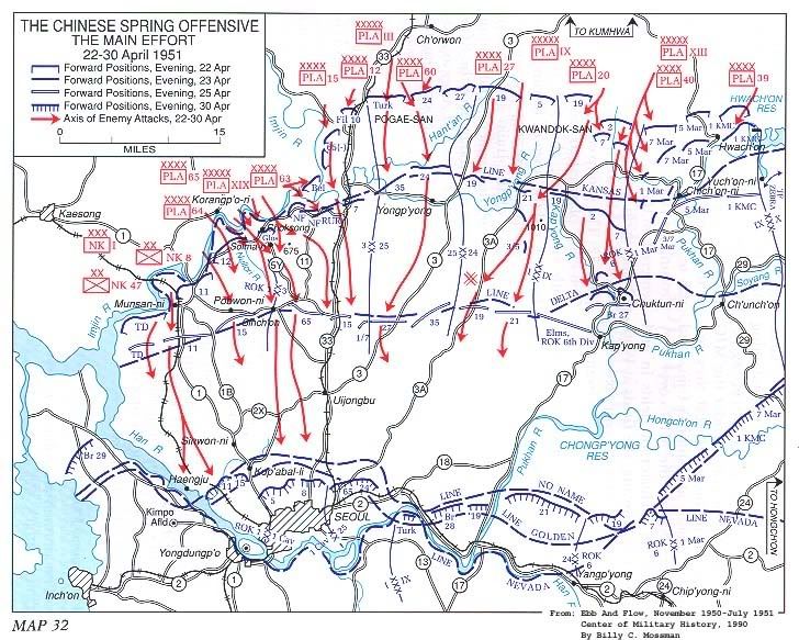聯合軍聯第9軍作戰地境內,志願軍攻勢被阻止於加平以南五哩之處。