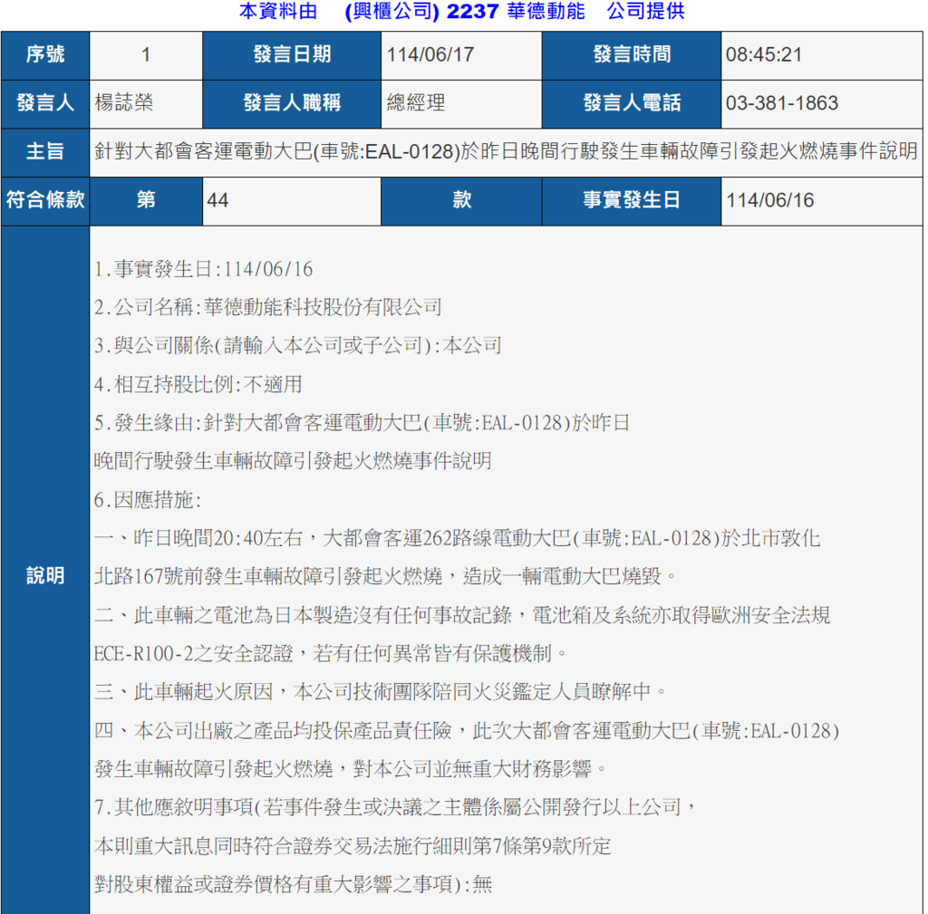 | 16:55 | rî | 公開資訊觀測站 昨天燒掉電動車的電池是日本製造 |