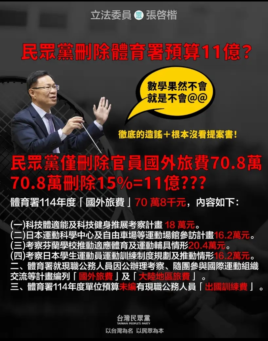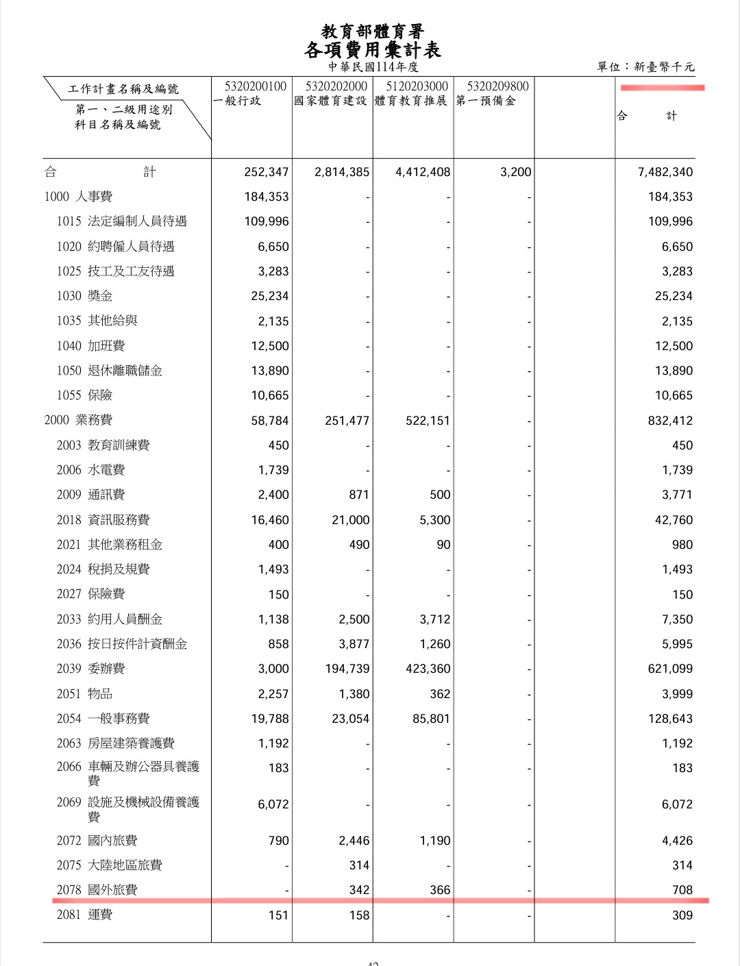 體育署2025的國外旅費預算才708,000元,刪了15%也才刪106,200元