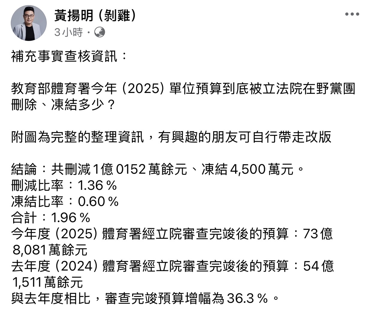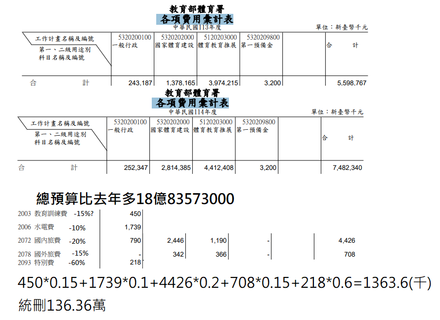 → net20200105: 體育署全部總額算只砍約1%多,這樣 39.9.167.159 01/22 18:54