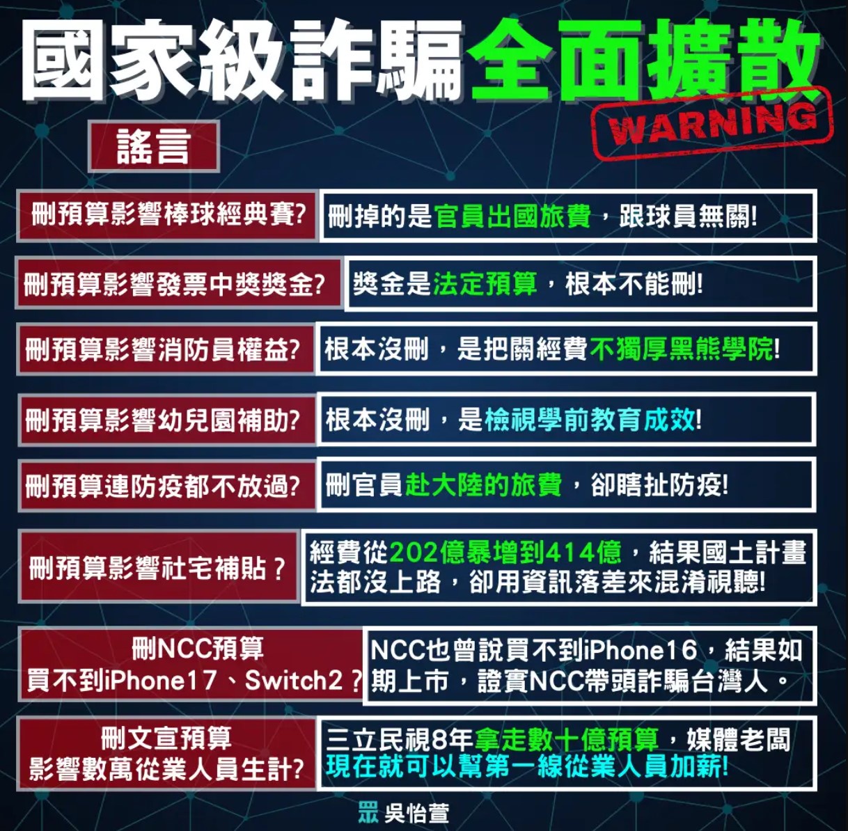 推 meta41110: 凸( ゚д゚)凸政黑開始在洗吳了喔 1.200.8.204 01/22 07:56