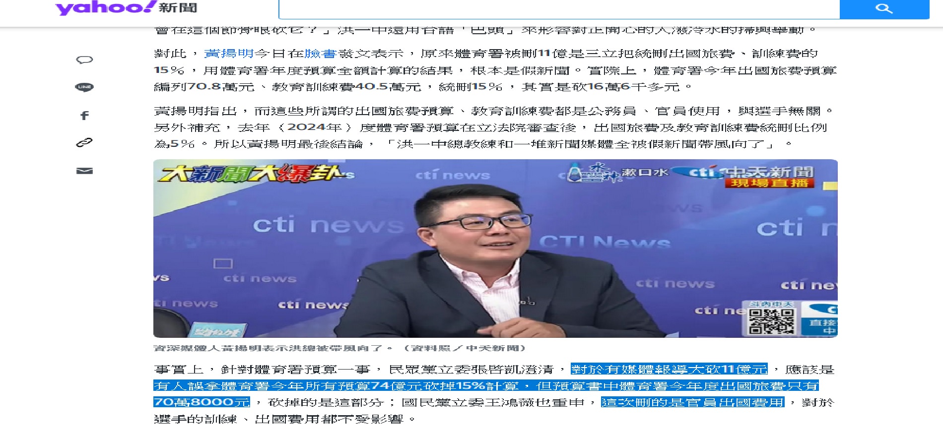 標題[爆卦]體育署被刪11億預算新聞造謠一條龍