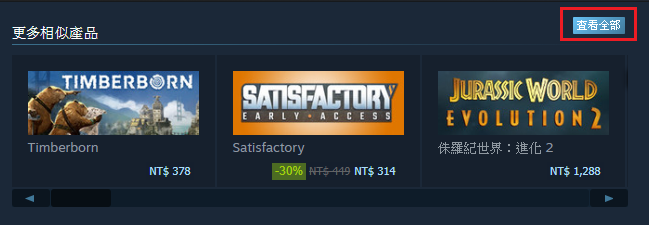 而如果玩家想找的其實是”我喜歡的類型的遊戲”時,steam的「相似產品」功能其實