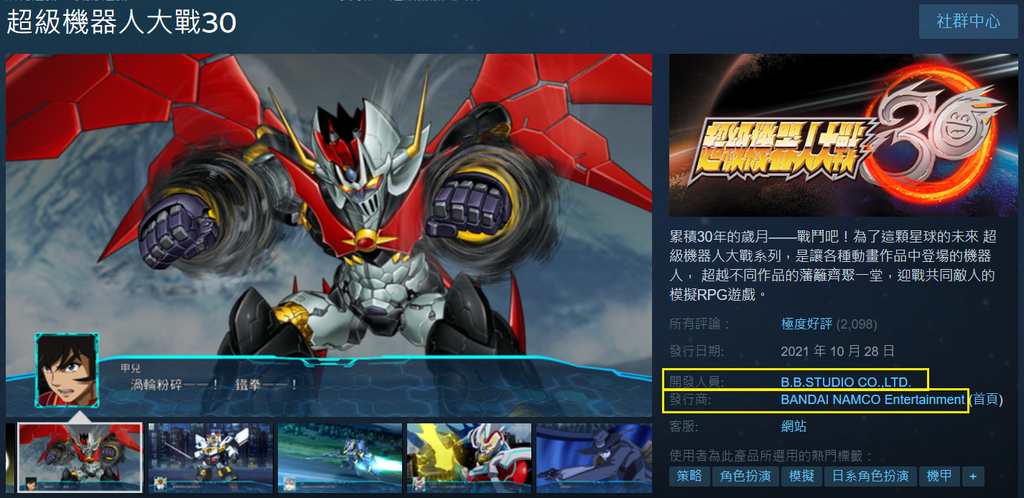 (Developer,因為開發跟發行寫久了很容易混淆,所以在這幾篇中會統一改稱製作商)