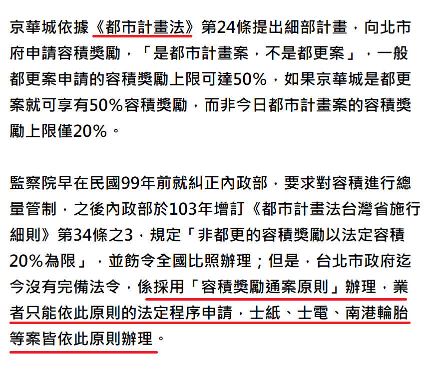 為什麼沒人去探討京華城 符合獎勵容積額度