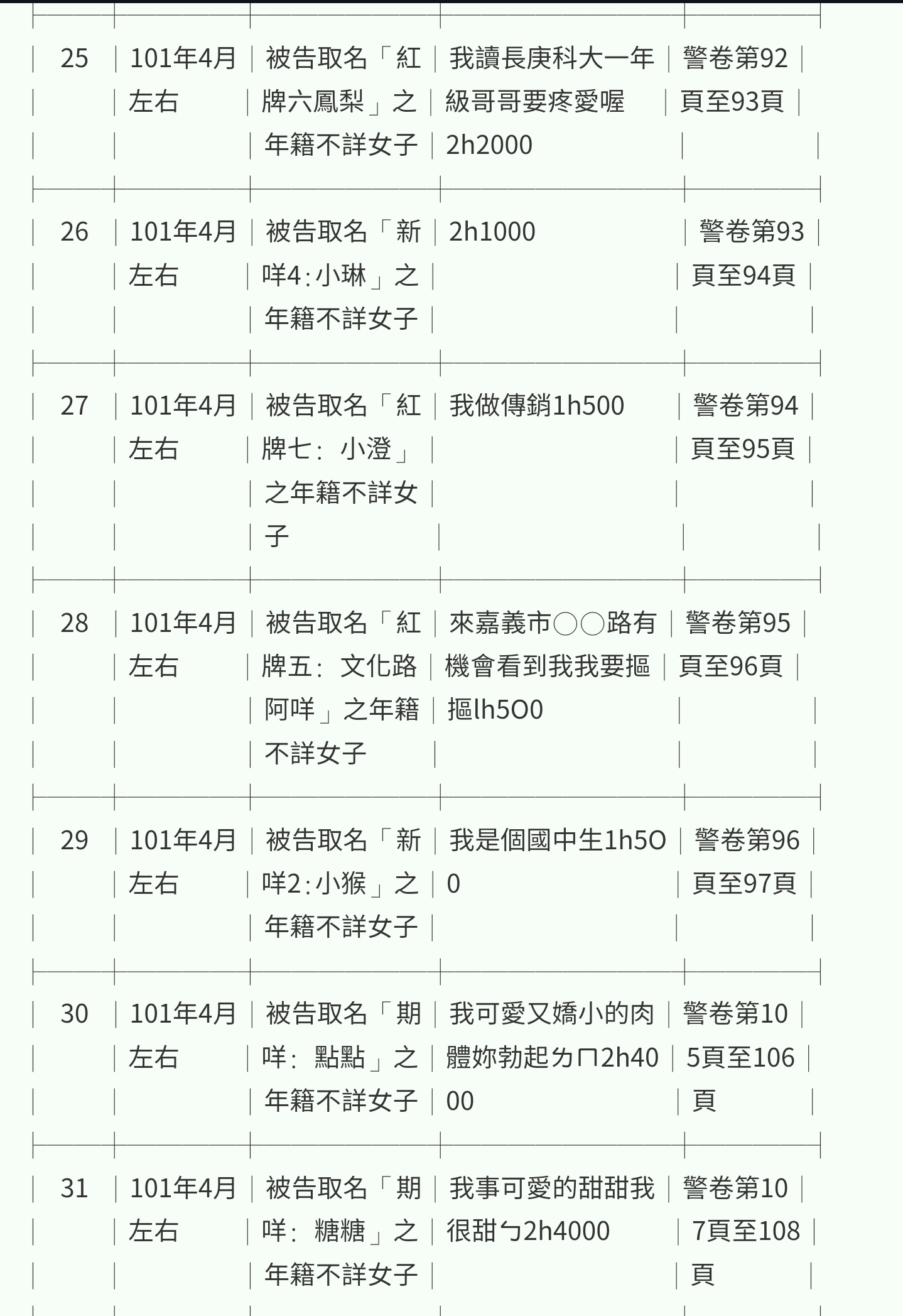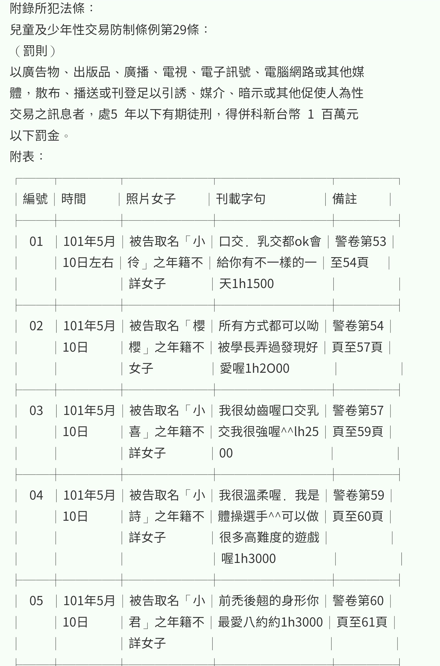 101年4至5月間在網路刊登足以誘促使人為性交易之訊息。