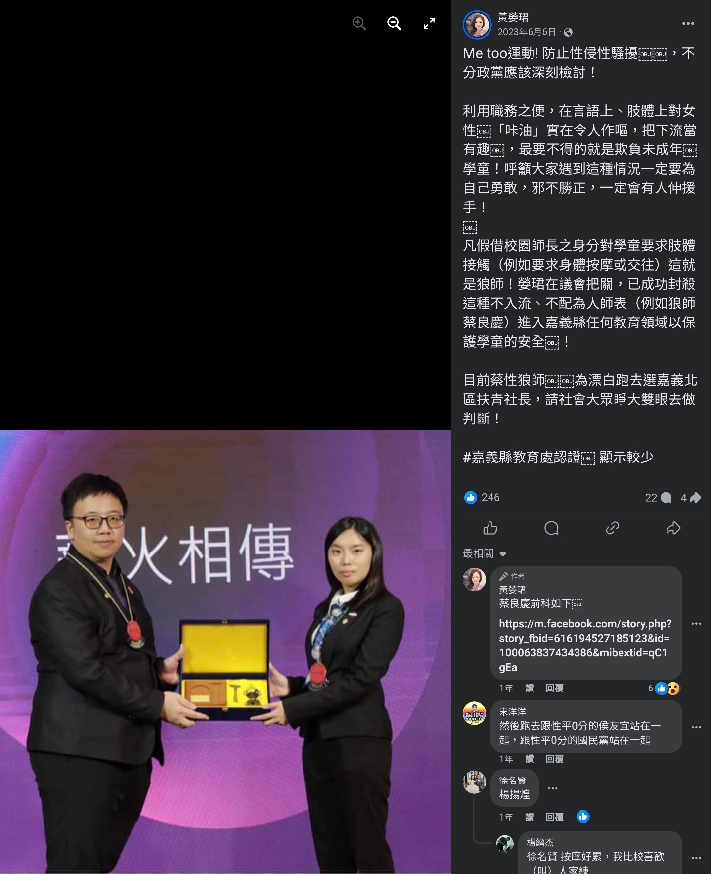 且曾涉及嘉義華南高商性平案件被嘉義縣議員在議會