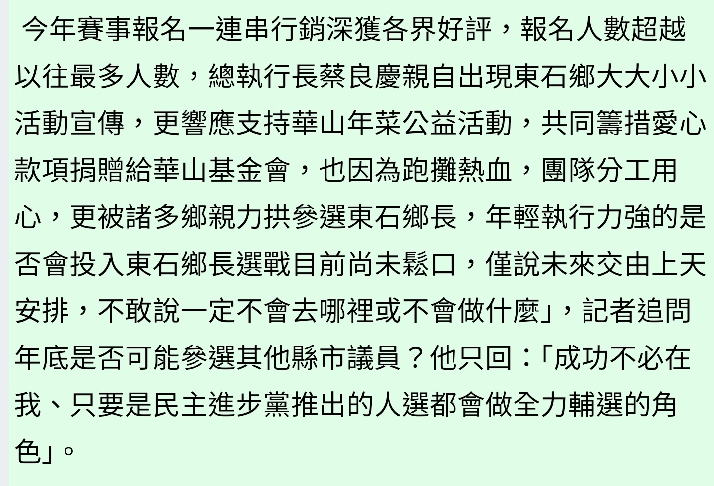 2022年還找記者報導放眾望所歸選鄉長 很想從政