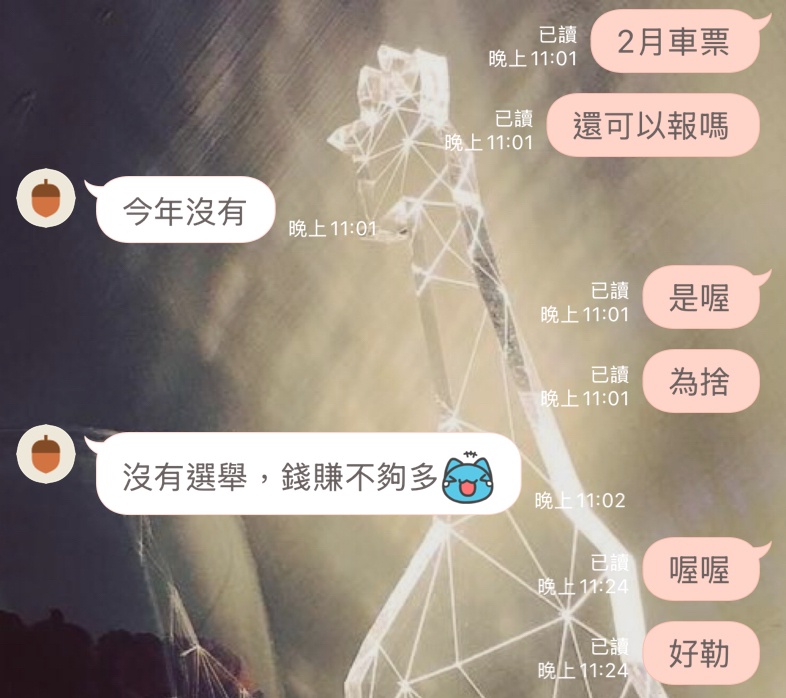 只有找到去年要給車票上繳但是會計拒絕