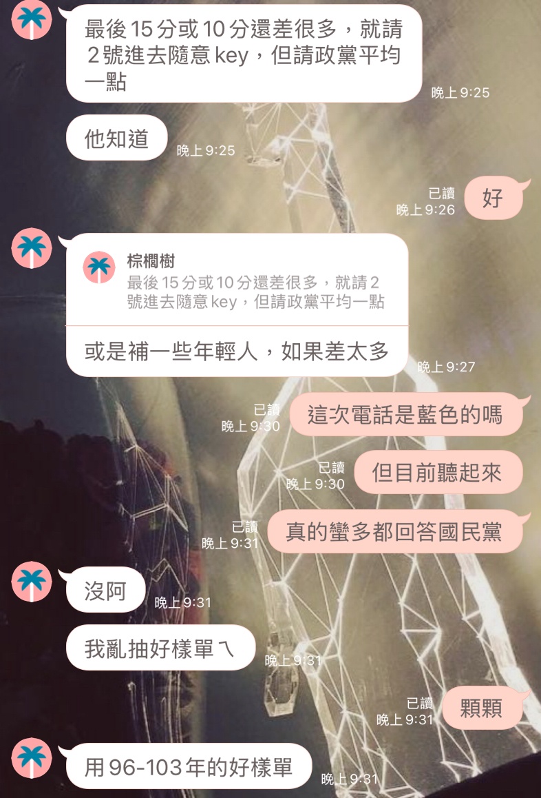 → JoeyChen: 新抽名單不是應該是政黨傾向不明的隨機 61.65.254.33 05/03 08:05