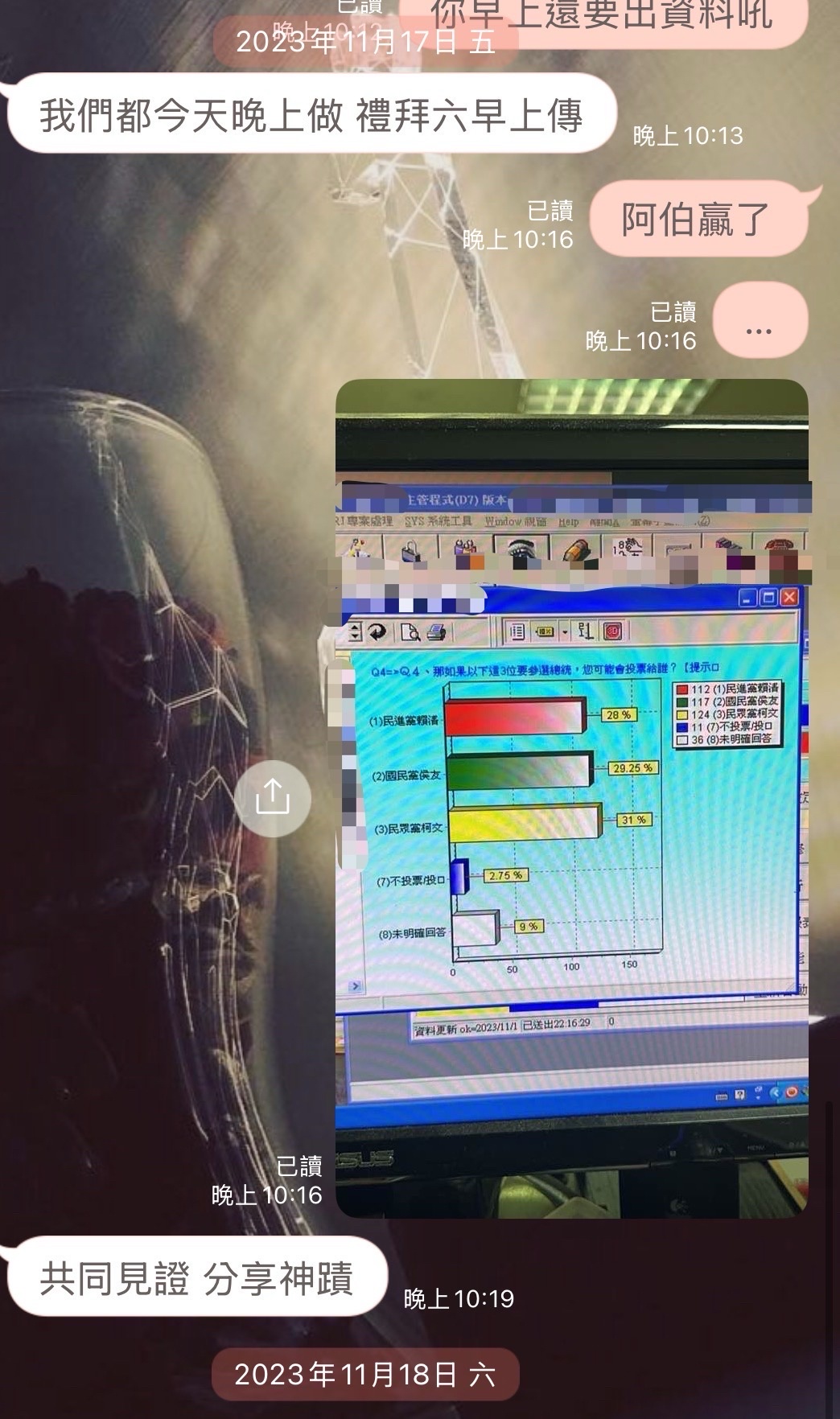 在2023年的時候總統大選前每天做400份的滾動式調查