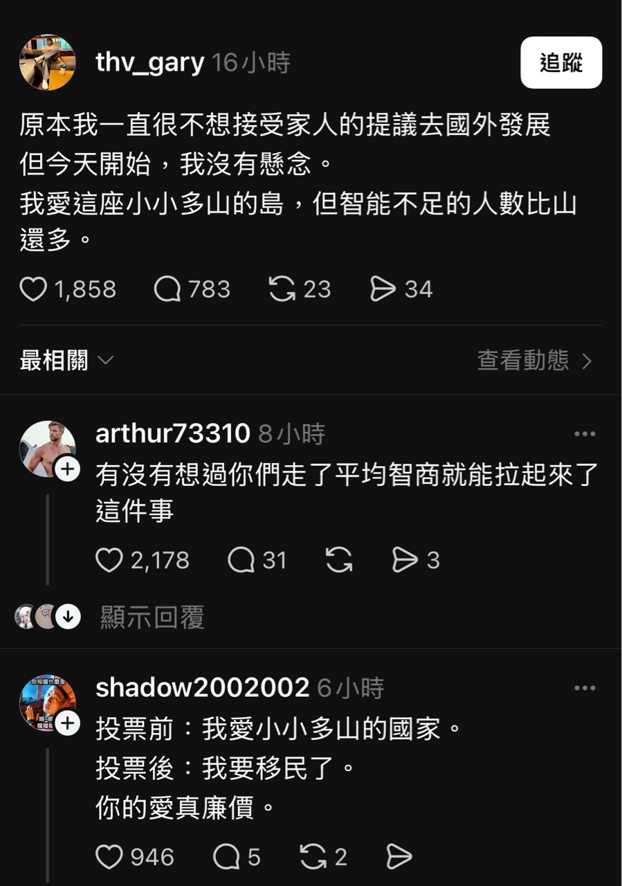 要移民等,沒想到留言開始出現各種嘲諷。