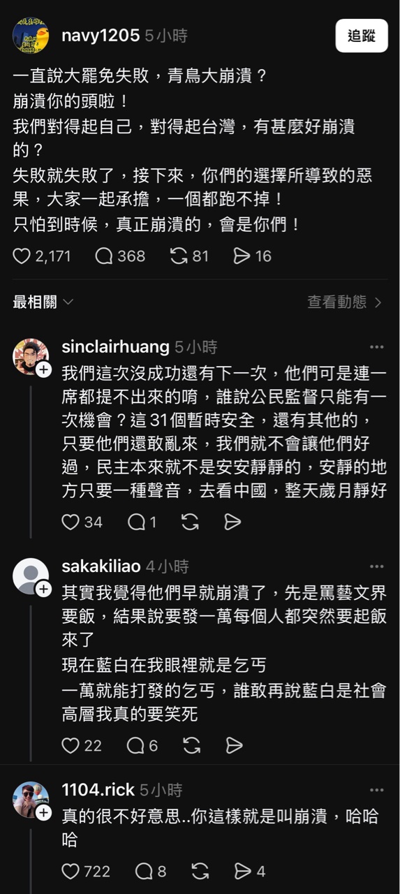推 q22w: 看青鳥崩潰真的超爽 122.118.197.77 07/27 23:55