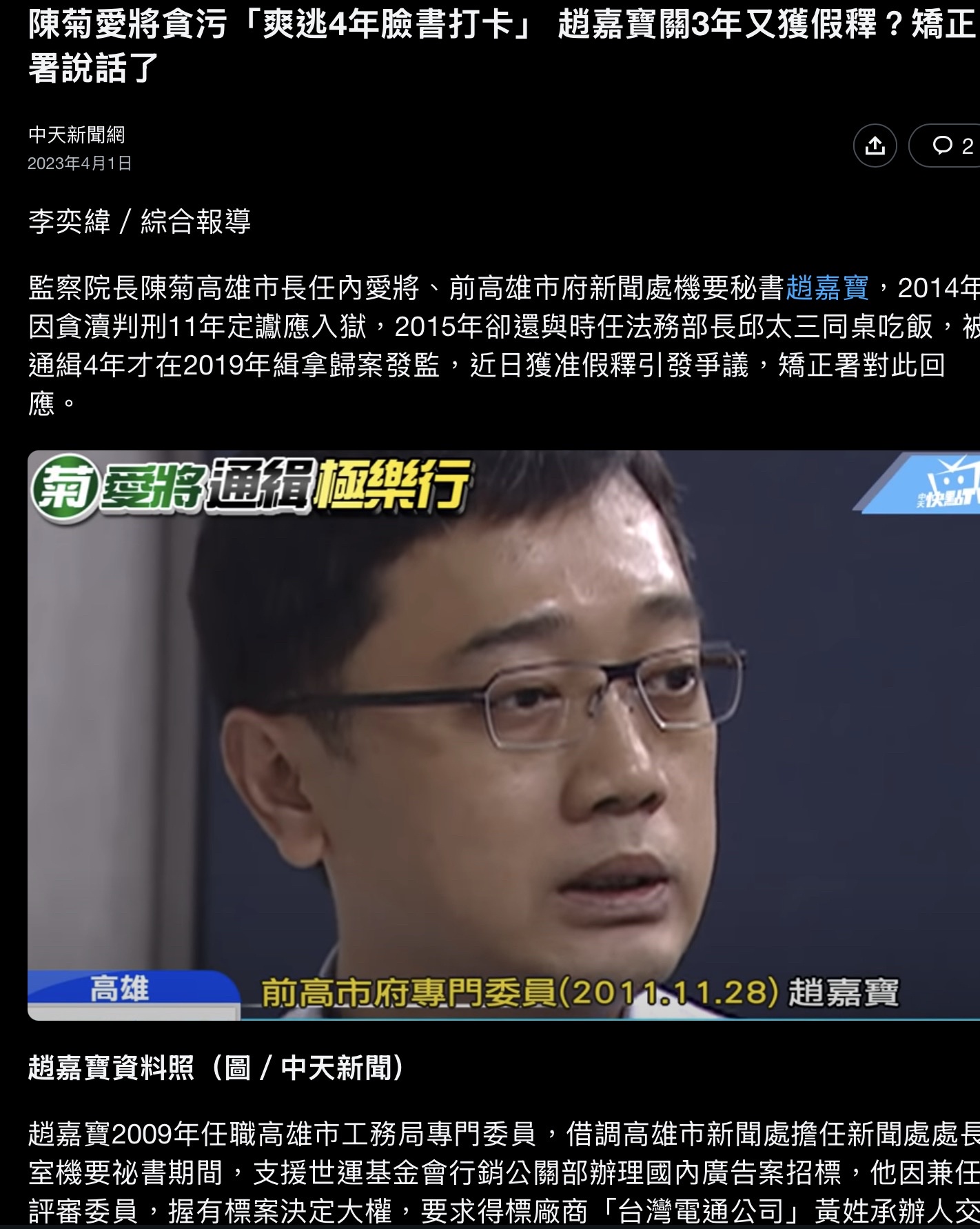 ‧ 交保金額: 無(早被判刑 2 年 6 月定讞,拒絕入監直接逃亡)